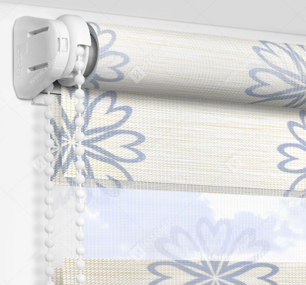 Рулонные шторы Зебра работают следующим образом: полоски ткани смещаются так, чтобы совпали светлые или темные слои, образуя, плотное или более прозрачное полотно. Так обеспечивается ночной или дневной режим затемнения. Также можно поднять шторное полотно полностью, открывая окно. По умолчанию - цвет фурнитуры белый.